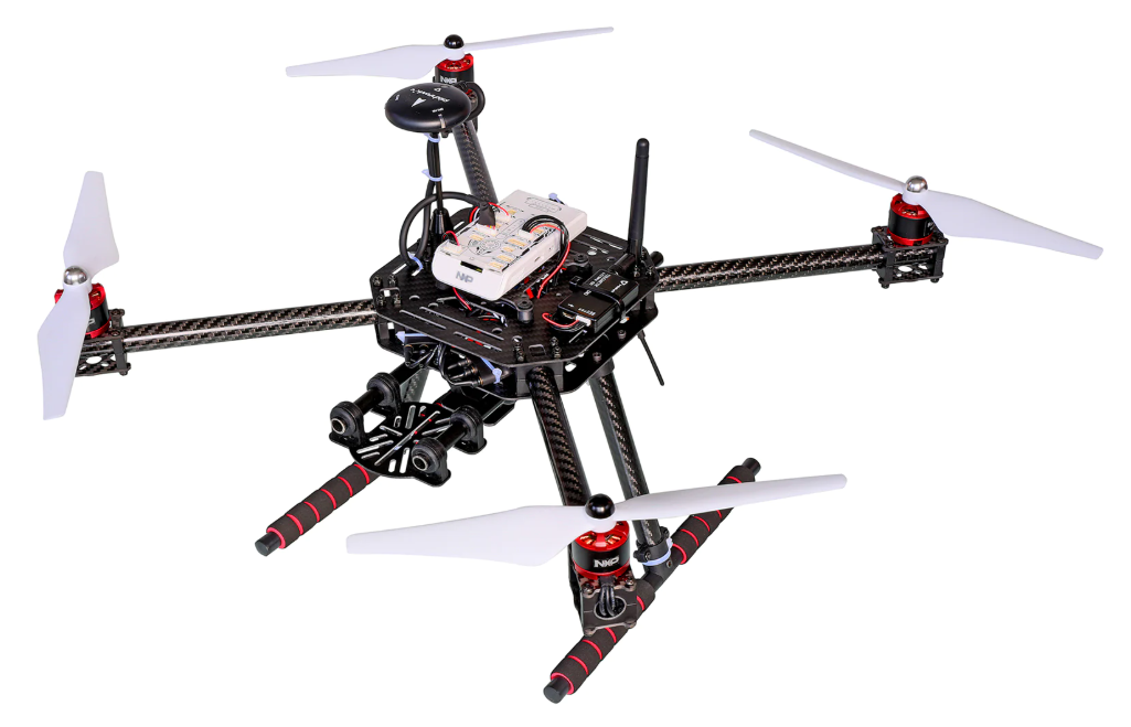 Deze drone is gebouwd in het kader van het NXP HoverGames programma, met gebruik van de RDDRONE-FMUK66 flight controller. De kit bevat een volledig modulair ontwerp met hoogwaardige onderdelen, sensoren, radioverbinding, GPS en een NXP microcontroller.